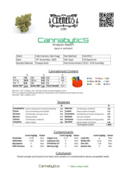 Bij het openen ruik je direct dennenhout, kruiden en een lichte dieseltoon. De smaak is vol en krachtig, met accenten van hout, hasj en een peperige afdronk, typerend voor zijn oldschool kush-achtergrond.