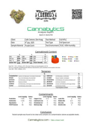 If you like strains such as Zkittlez, Gushers, or Sherb Mints, Purple Zushi will be a standout in your lineup with its gassy fruit-forward funk and balanced effect.